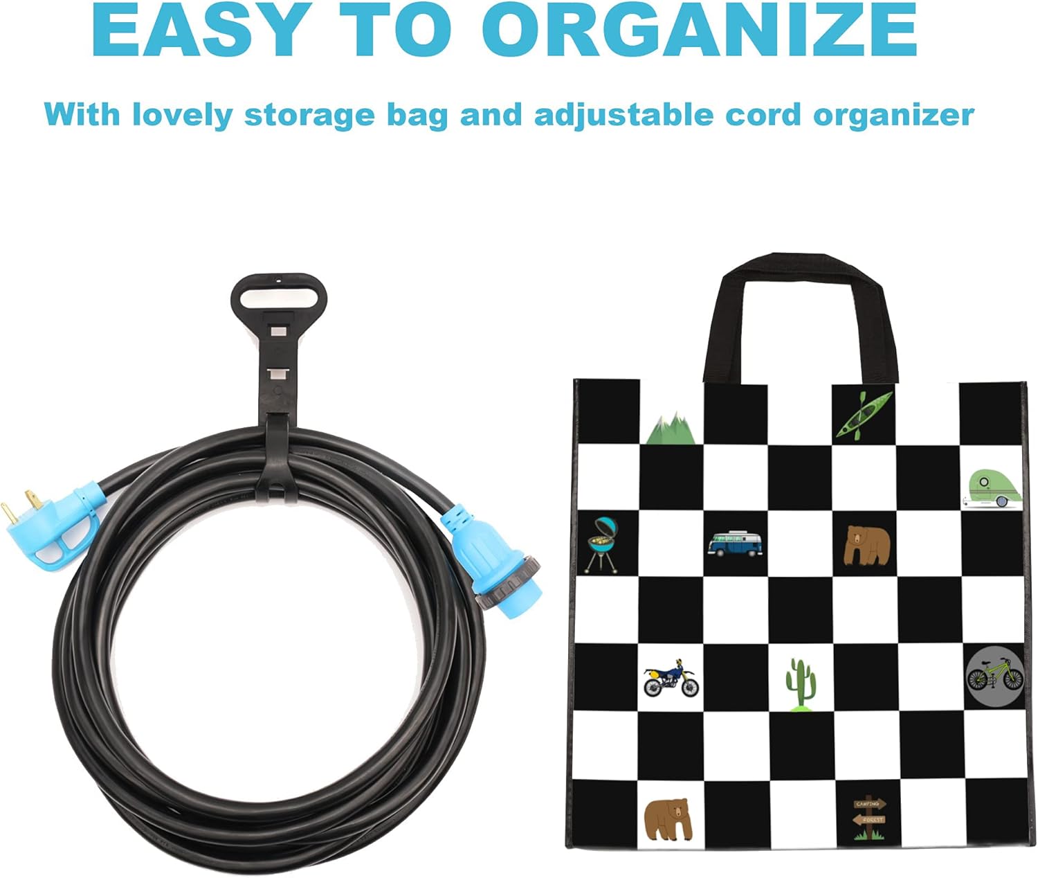 30 Amp RV Power Cord Twist Locking, Heavy Duty 10 Gauge 3 Wire STW Pure Copper Wire with Grip Handle, TT-30P to L5-30R with Cord Organizer for RV Trailer Campers