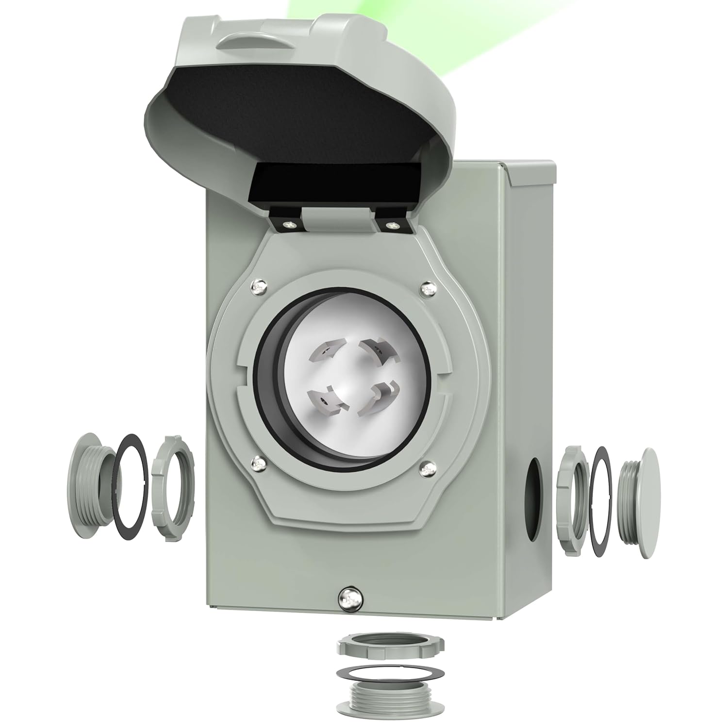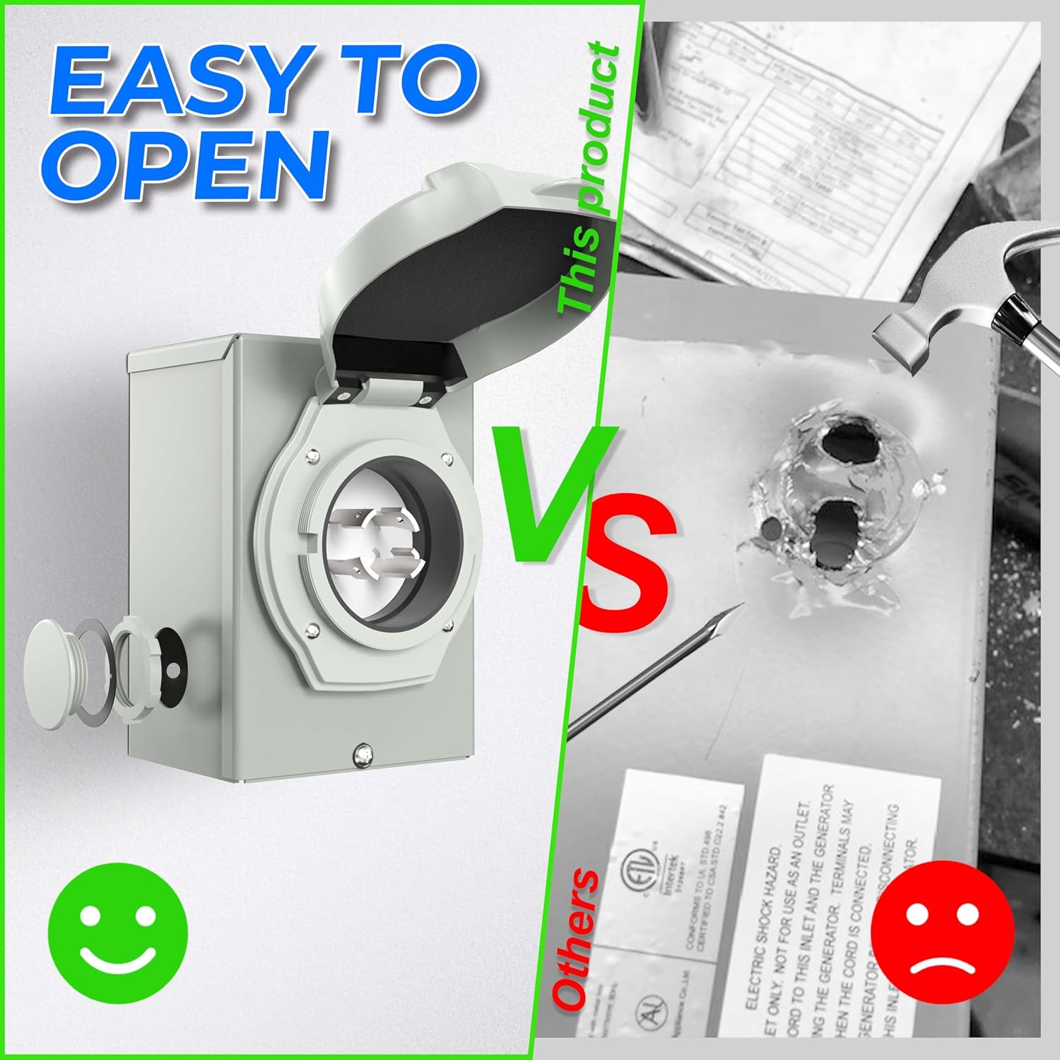 - Weatherproof & Anti-Rust Construction: Features a weatherproof spring cover to protect the inlet; power Inlet Box is powder-coated for resistance to weather damage and rust