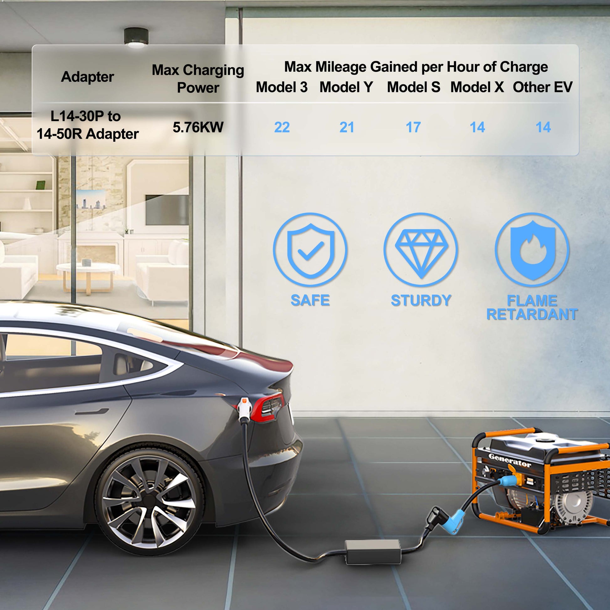 4 Prong 30 Amp to 50 Amp Generator to RV/EV Adapter Cord, NEMA L14-30P to 14-50R, Heavy Duty STW 10 AWG Suit for Tesla Model S/3/X/Y Charging or Generator to House and RV Trailer Camper