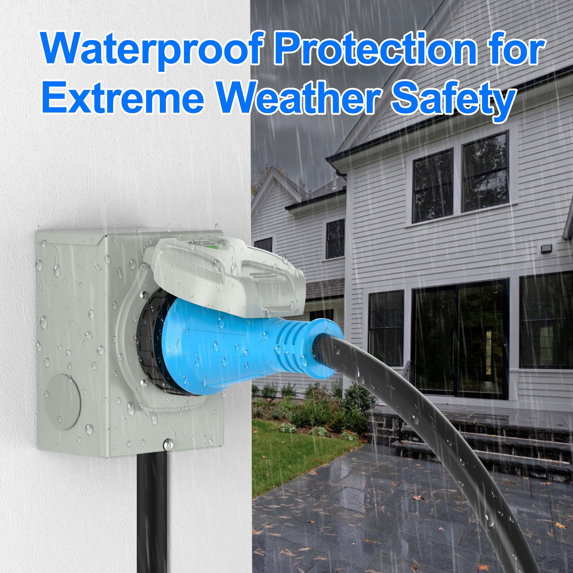 50 Amp Generator Cord and Power Inlet Box Combo Kit, Pure Copper Wire STW 6/3+8/1 AWG 125/250V, NEMA 14-50P to SS2-50R Twist Lock for Generator to House