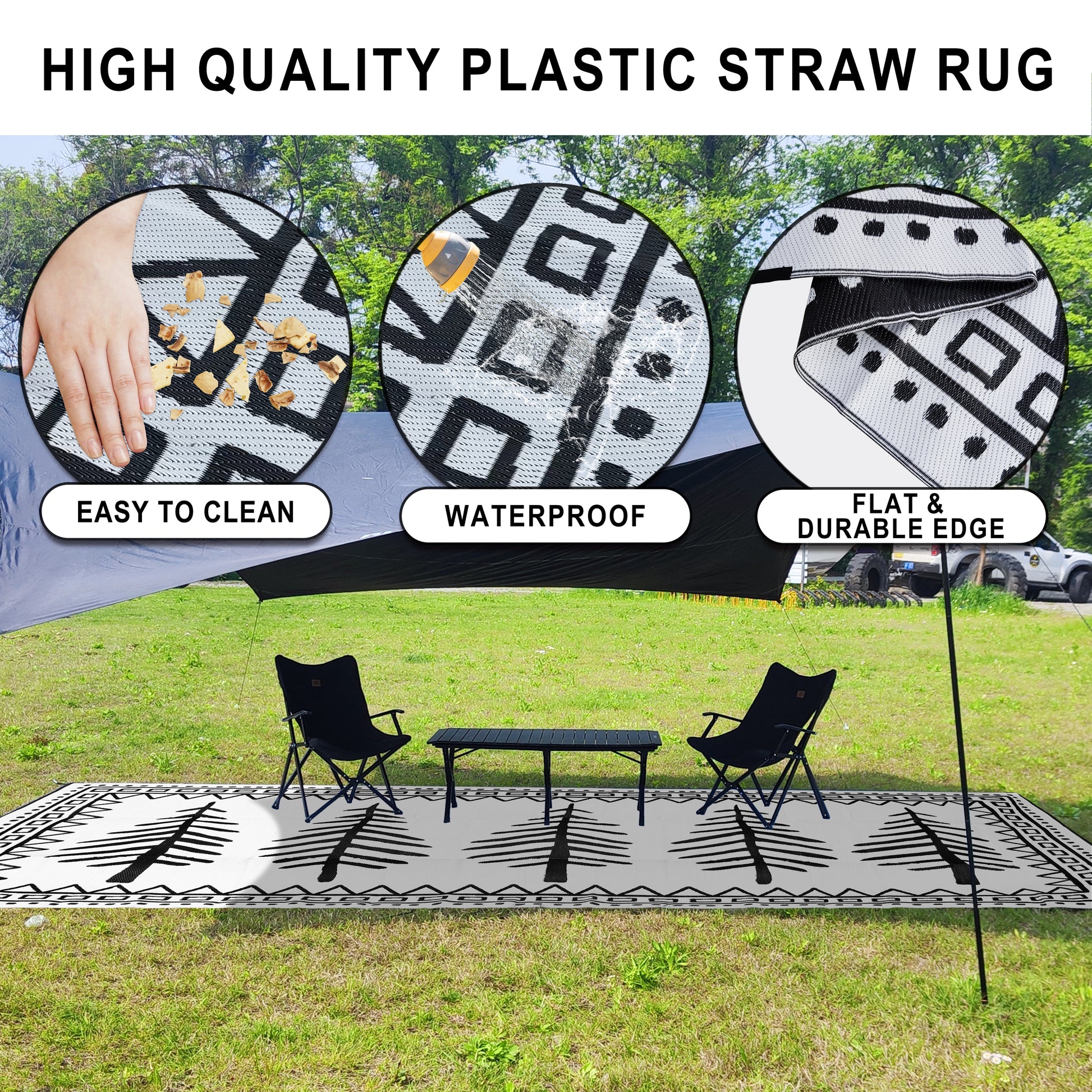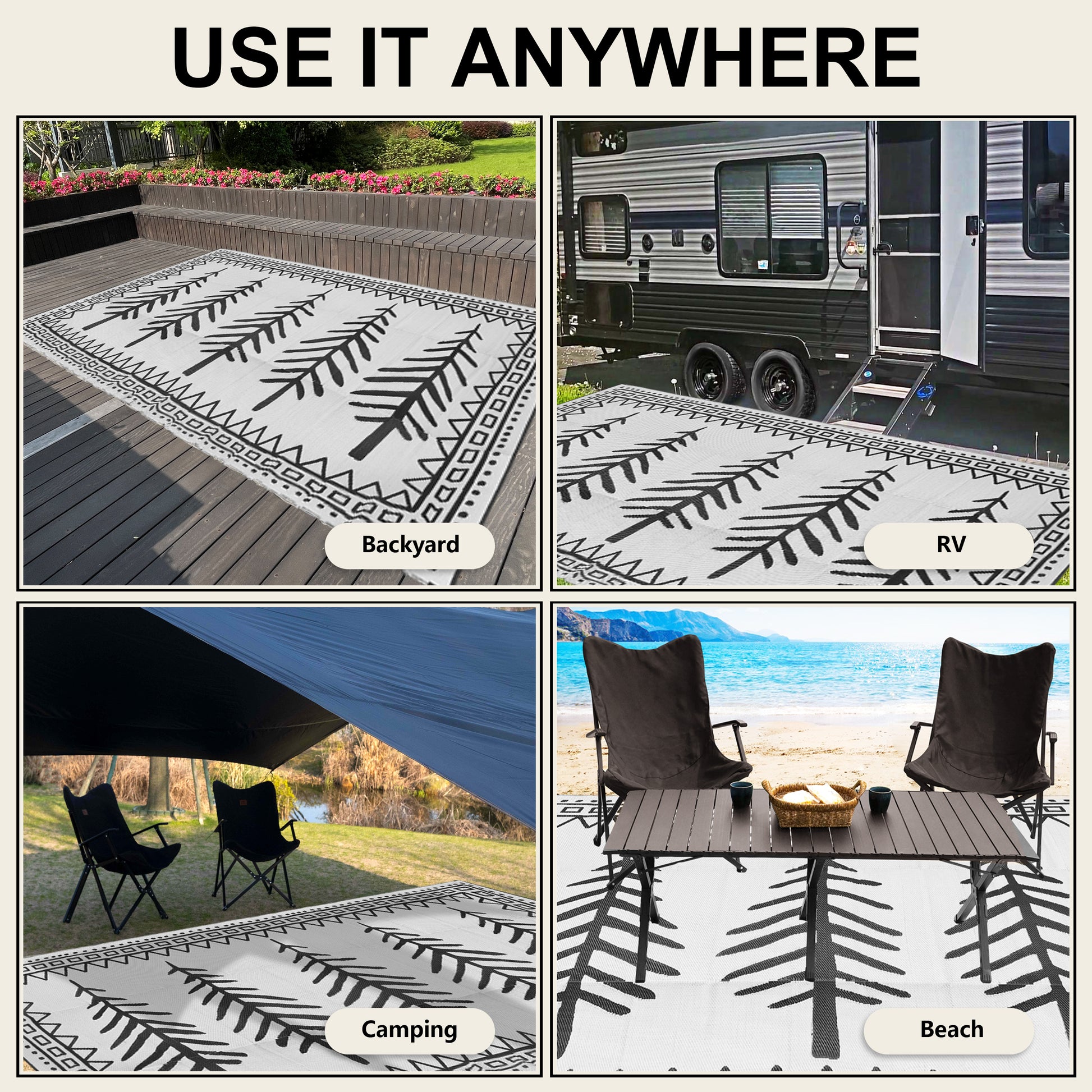 - WIDE USE & ECONOMICAL: Perfect for RV travelers, picnics, backyard, deck, and beach, this outdoor area rug is versatile and can replace traditional carpets. And our plastic outdoor rug comes with a storage bag so you can carry and store it easily. It's also economical, making travel more affordable.