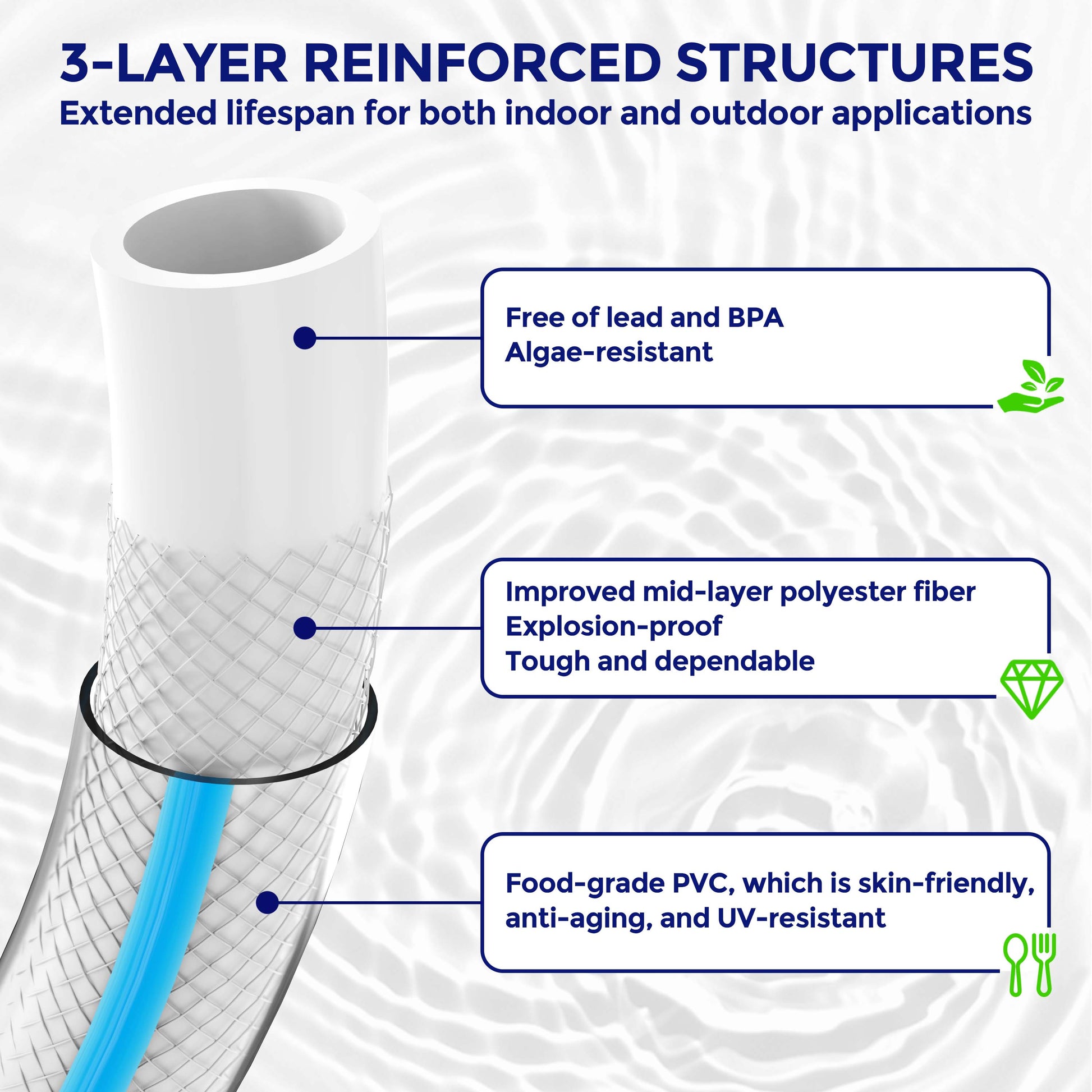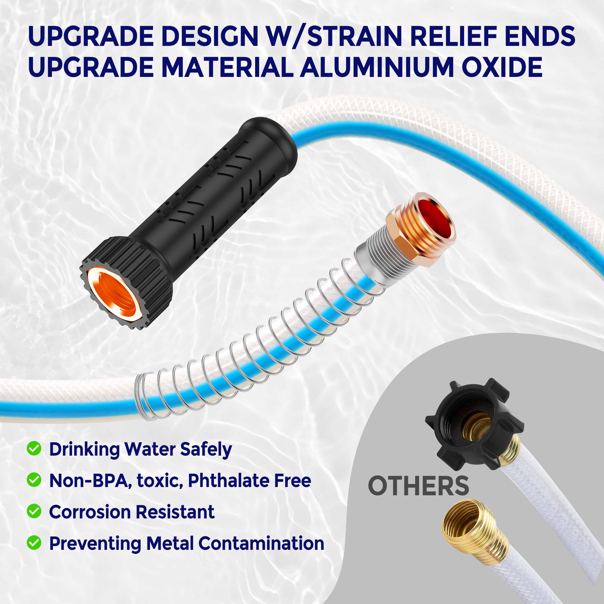 • Lead-Free Drinking Water Hose: This RV water hose is made of environmentally friendly rubber; lead and BPA free; no odor taste; no rubber taste; 150 PSI performance burst